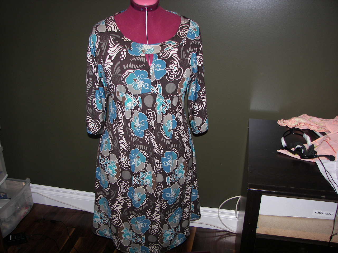 I also added a belt to the dress, because without it the dress will look more like a maternity gown. I finished the hem on my coverstitch machine and serged all the raw edges.