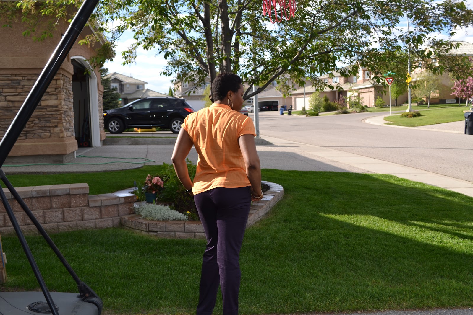 Very nice! Love, love, love the color of this blouse! Great fit on those pants too!