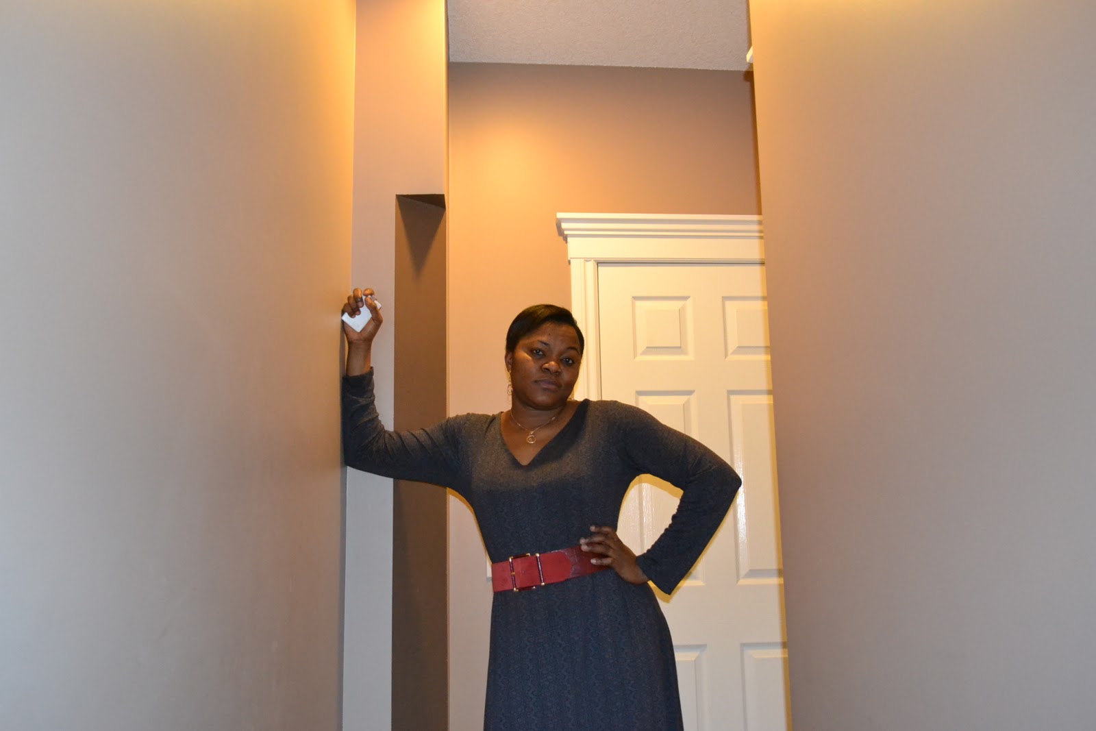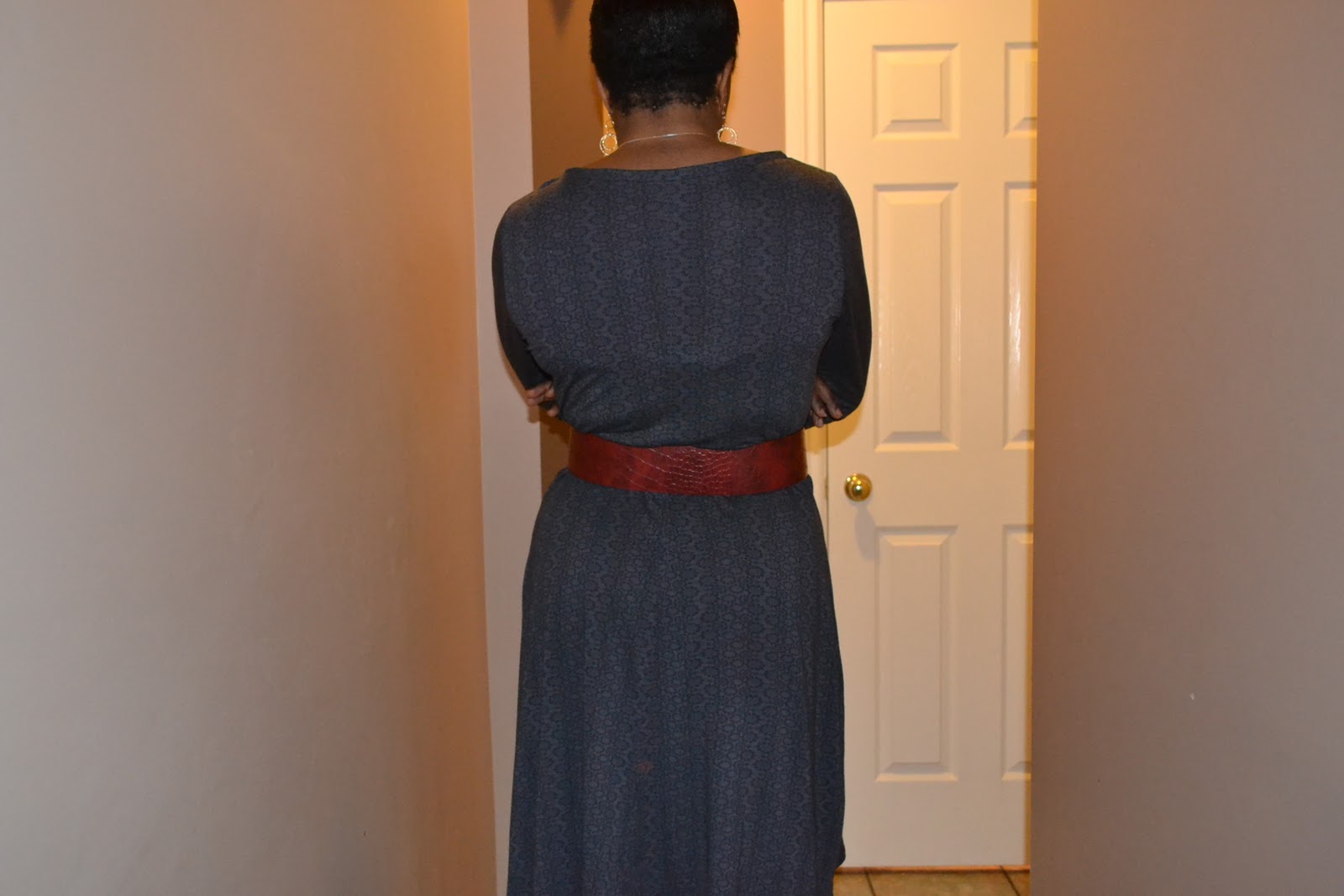 I wore this to work today with tight and knee-length boots…….