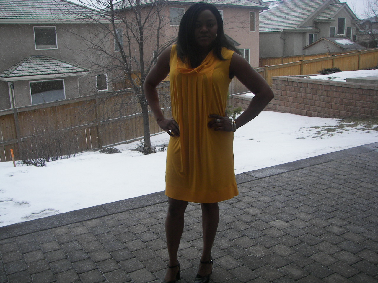 I ran across your blog when doing a search for interfacing a hem. I love the hot yellow colour. Then I looked in the background to see SNOW!!! Lovely, lovely snow! It was so refreshing to see, especially since we are experiencing 8+ days of a horrible heat wave. I will keep this dress in mind for my daughter.
