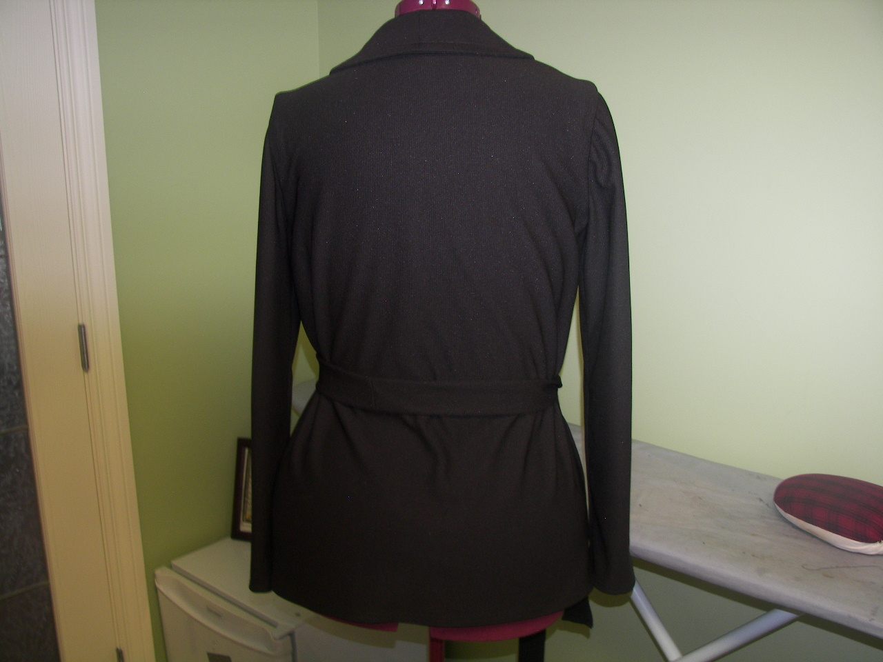 For the finale, I made a cardigan instead of a jacket, this is so nice for spring and when I tried it over my dress it was like a marriage made in heaven…..I will be making this again in a spring color… I will post a picture of me wearing the garments when hubby is around ….but for now please enjoy these shots……………………