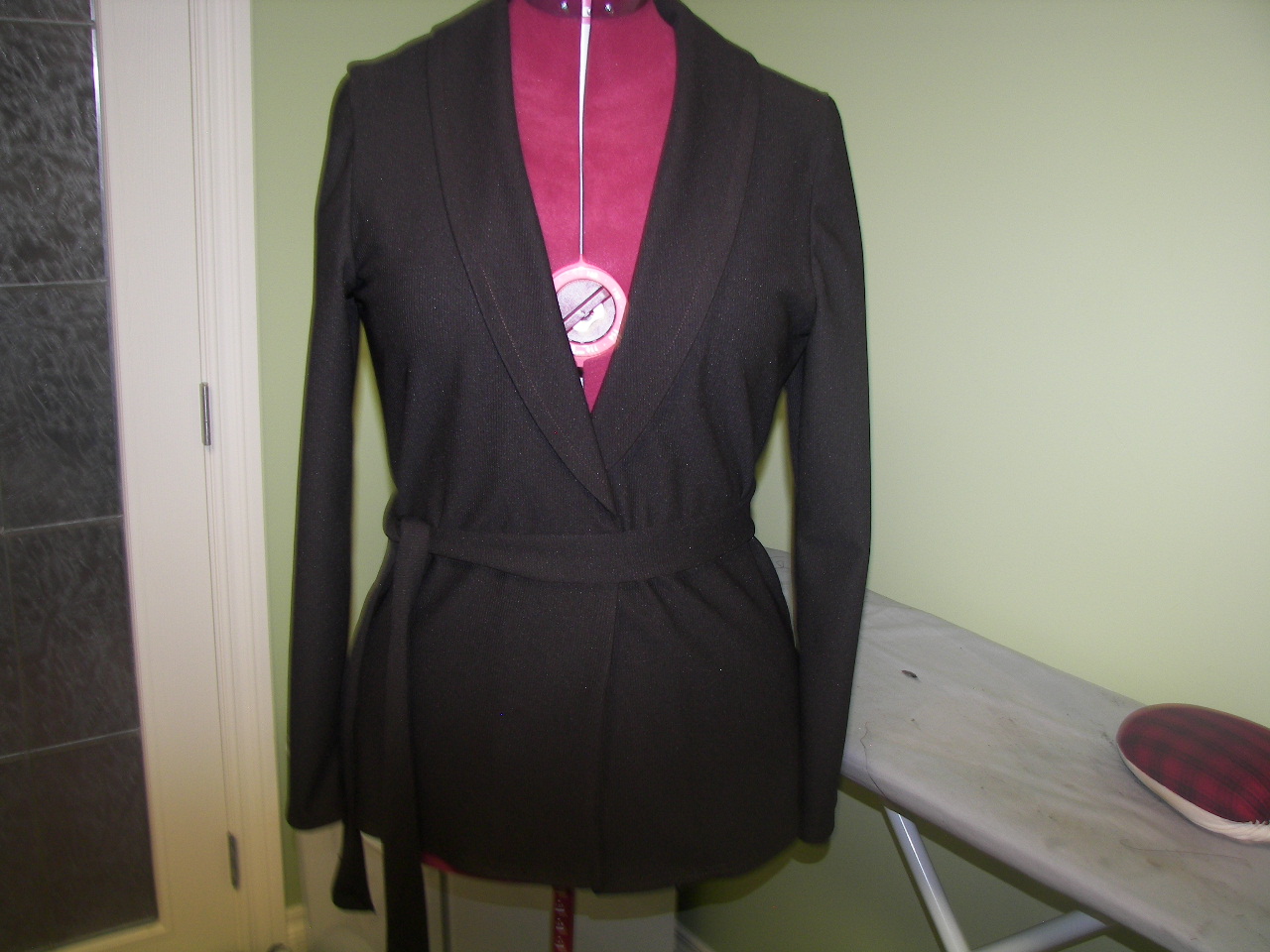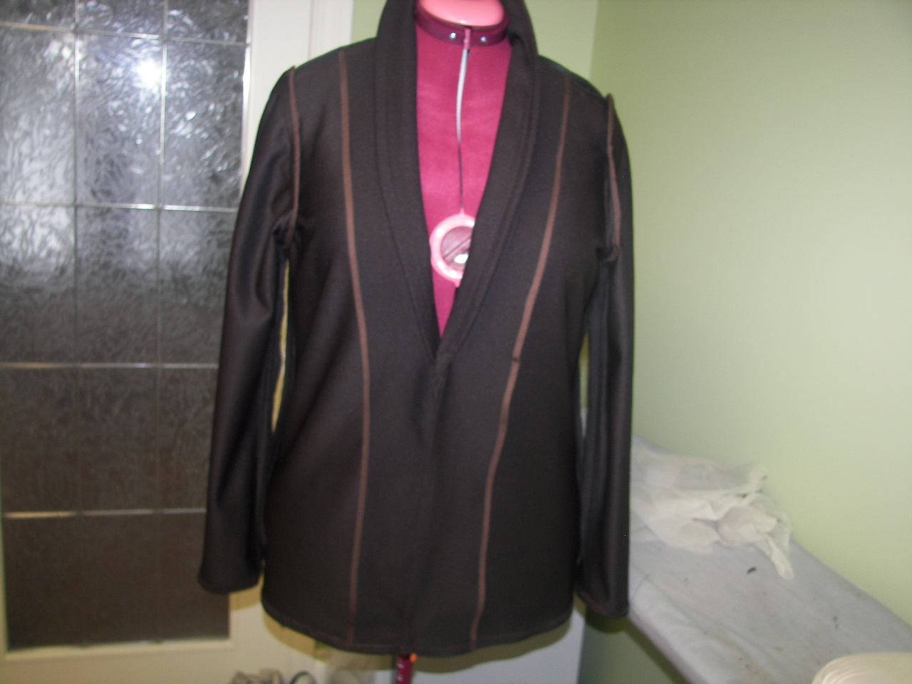 For the finale, I made a cardigan instead of a jacket, this is so nice for spring and when I tried it over my dress it was like a marriage made in heaven…..I will be making this again in a spring color… I will post a picture of me wearing the garments when hubby is around ….but for now please enjoy these shots……………………