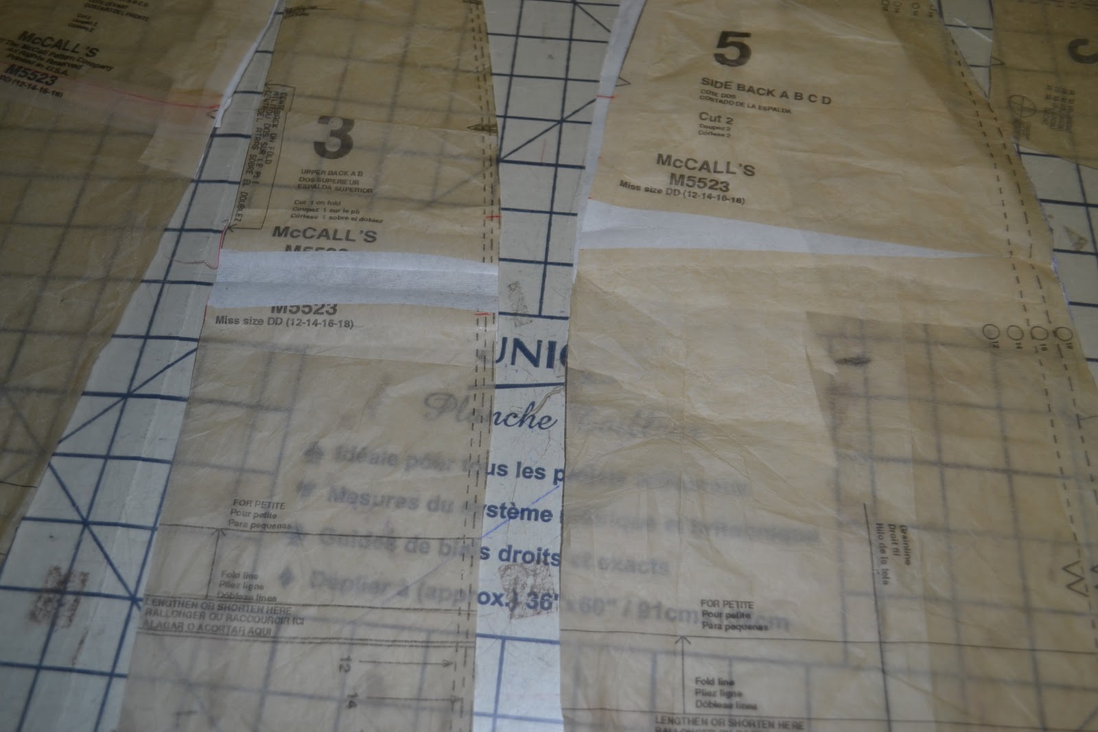 Pattern Sizing: 12-14-16-18 , I cut between 12 &14 at the waist and graded up to 16 just below the waist