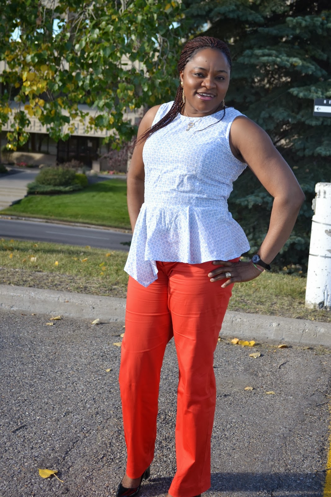 You did a fantastic job fitting your pants and love it with the peplum top.